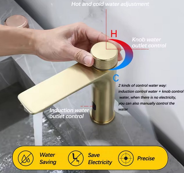 Transformă-ți baia într-un spațiu modern și rafinat cu această baterie de lavoar aurie, ce combină designul luxos cu tehnologia inteligentă. Realizată din materiale durabile și prevăzută cu două moduri de utilizare – senzor și manual, bateria oferă confort, igienă și flexibilitate în orice situație.