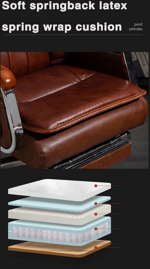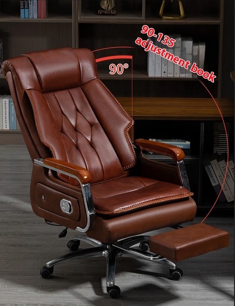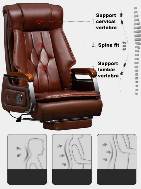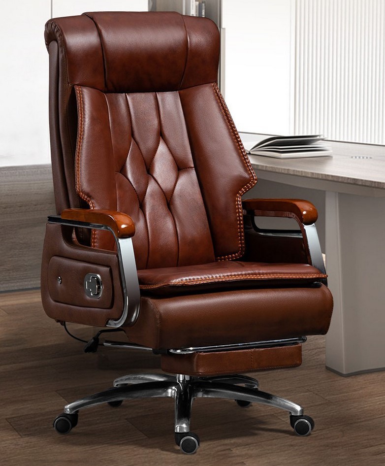 Scaun de birou directorial, LUXURY, Boss chair, spatar rabatabil, suport de picioare, functie recliner, piele naturala, Maro
